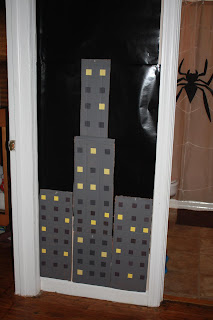 So I made capes and little city buildings and big city buildings and a giant London phone booth. I had a spiderman bathroom and the hallway was entirely covered in black wrapping paper and turned into Gotham city at night. All in in I'm pretty proud of the decor. And the actual party went great, we had wonderful, well behaved guests and it was a very low stress day. Best of all Lou's OCD kicked in big time ass soon as the last guest left and he had the whole place cleaned up in about 45 minutes.